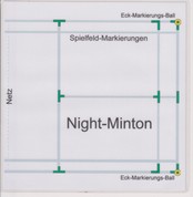 . . . ist ein außergewöhnliche Spielvariante mit hohem Spaßfaktor. Hier wird Badminton in der verdunkelten Sporthalle nach entschärften Wettkampf-Regeln (keine Schmetter-Bälle) gespielt. Dazu wird die Halle mit UV-Licht-Lampen ausgeleuchtet. Zum besseren Erkennen werden die gelben Plastik-Federbälle mit Knicklichtern versehen. Die Netze und Spieler werden durch die Benutzung von fluoreszierenden Materialien und Farben kenntlich gemacht. Die Eckpunkte der relefanten Spielfeld-Linien werden mit fluoreszierenden Klebeband markiert. Siehe nebenstehendes Bild. Die hinteren Ecken der Grundlinien werden mit gelben Plastik-Federbälle, in denen sich ein Knicklicht befindet, markiert.